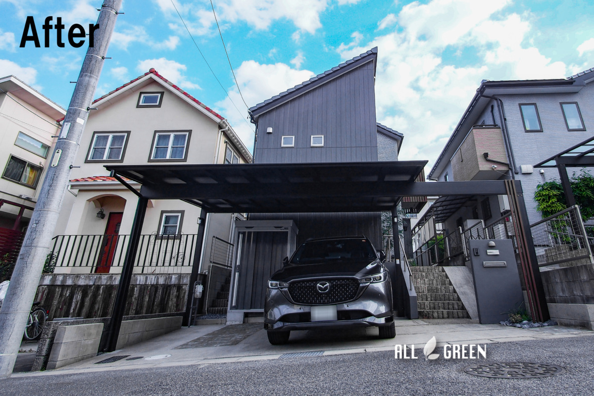 名古屋市緑区 既存を活かしながら暮らしをアップデート!梁延長カーポートとデッキスペースを再設計した外構リフォーム