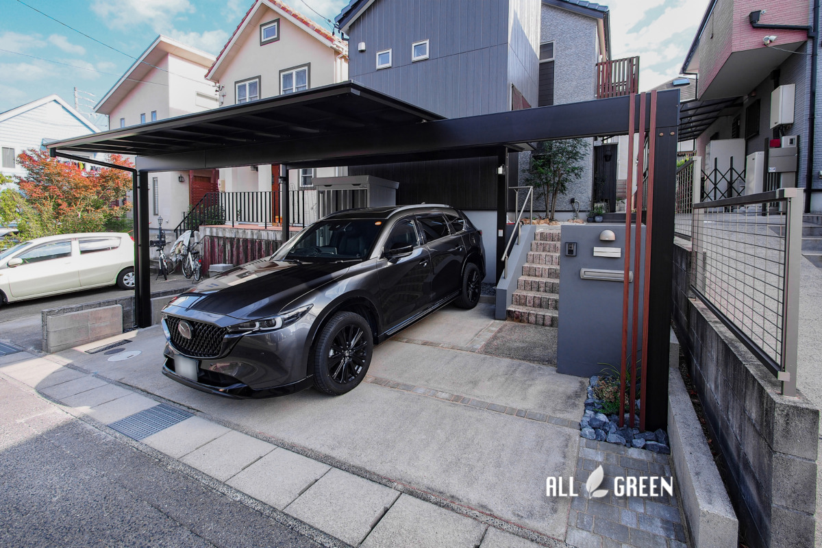 やや緑みを帯びたグレーはナチュラルな風合いで駐車場に程よい抜け感を与えます。