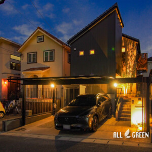 門塀前の植栽ライトがカーポートのデザイナーズパーツをさりげな~くアピールしているではありませんか!
