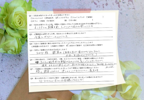 最初は予算とやりたいことのバランスで悩んでいたのですが、打ち合わせで... Q1:当社をお知りになったきっかけを教えてください ☑インスタグラム Q2:当社をお知りになった後、実際にご相談し... 2026.02.05