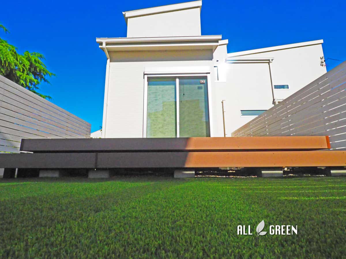 こちらも木のフェンスに見えますが人工木を用いた商品ですので腐食せず、また色あせしにくいという特徴がありメンテナンスにお手間をとりません。