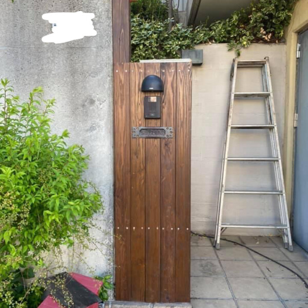 リフォーム工事で門柱を天然木で新しくしました。 素敵な門柱になりました。 やはり自然の風合いは最高ですね。
