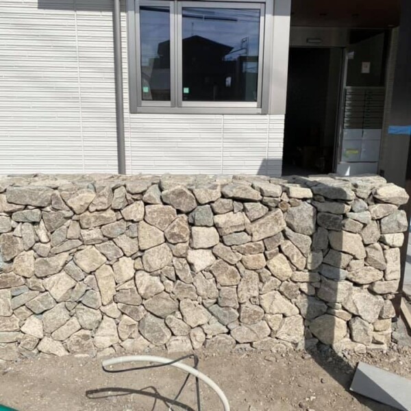 圧巻な石積みが完成しました。 自然石を積み上げて塀を作りました。 存在感が凄いですね!