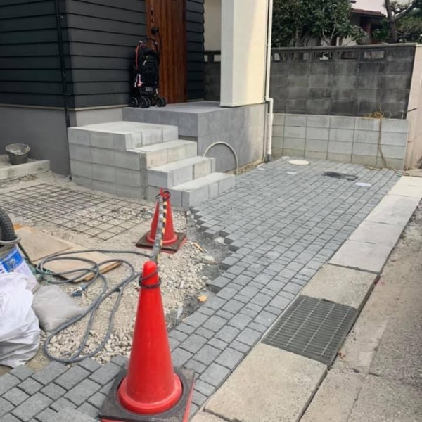 駐車場のインターロッキングが完成しました。 アプローチと道路側をインターロッキングで 内側がコンクリートになります。 仕上がりが...