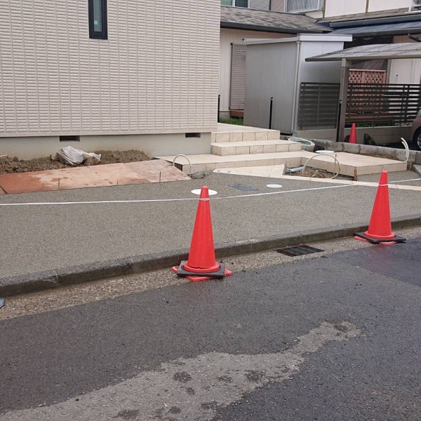 洗い出しコンクリートが完成しました。 梅雨時期ですが、なんとか順調に進んでおります。 細かい仕上げと植栽で完成です。 楽しみです...