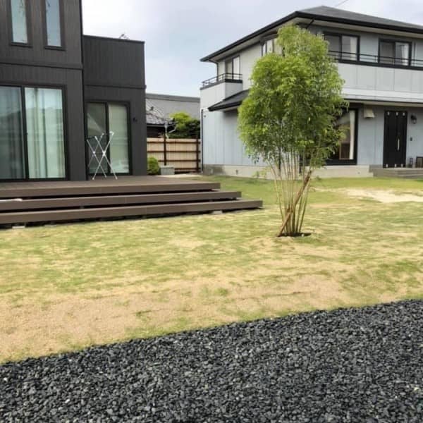 植栽工事が終わりました。 いやー素敵ですね。 広いお庭に今回は天然の芝の施工させていただきました。 シンボルツリーは3mのシマト...