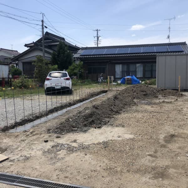 ガレージの工事が始まりました。 ガレージにも基礎工事が必要なのです。 正確な90度が必要になります。 配筋をして、ベースを打設し...