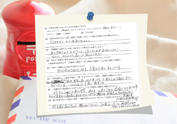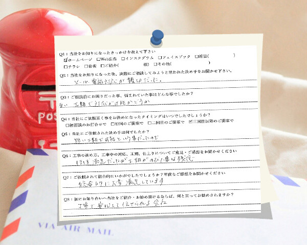 Q1:当社をお知りになったきっかけを教えてください ☑ホームページ Q2:当社をお知りになった後、実際にご相談しよ...