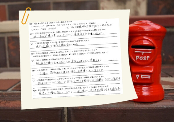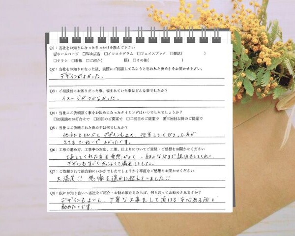 Q1:当社をお知りになったきっかけを教えてください ☑ホームページ ☑ご紹介(三協アルミ様) Q2:...