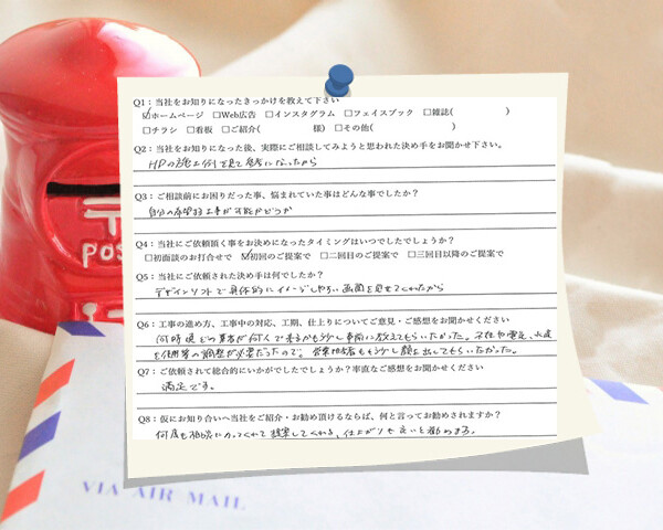 Q1:当社をお知りになったきっかけを教えてください ☑ ホームページ Q2:当社をお知りになった後、実際にご相談...
