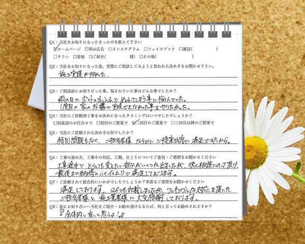 Q1:当社をお知りになったきっかけを教えてください ☑ ホームページ Q2:当社をお知りになった後、実際にご相談...