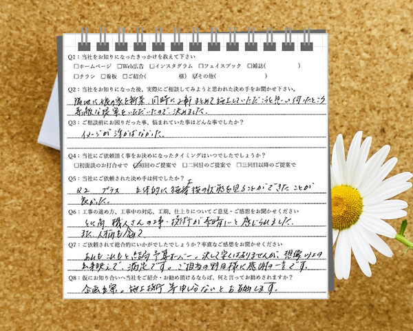 Q1:当社をお知りになったきっかけを教えてください ☑ 通りがかって Q2:当社をお知りになった後、実際にご相談...