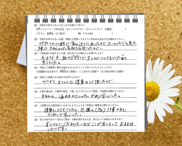 Q1:当社をお知りになったきっかけを教えてください ☑ホームページ☑看板 Q2:当社をお知りになった...