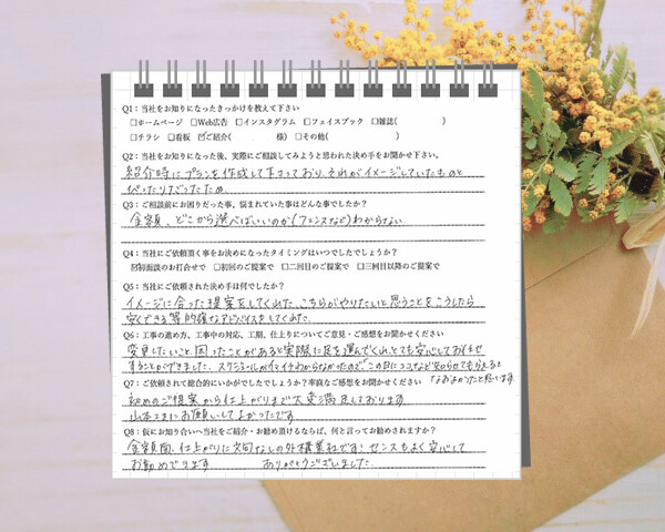 Q1:当社をお知りになったきっかけを教えてください ☑ その他(お店の前を通ったから) Q2:当社をお知りになった...
