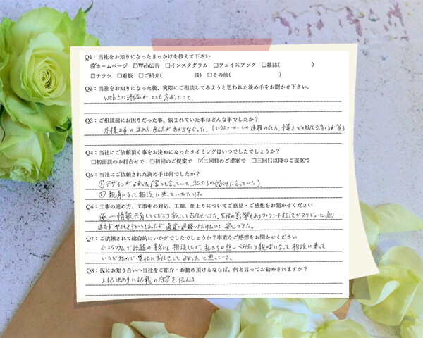 Q1:当社をお知りになったきっかけを教えてください ☑ ホームページ ☑ インスタグラム Q2:当社...