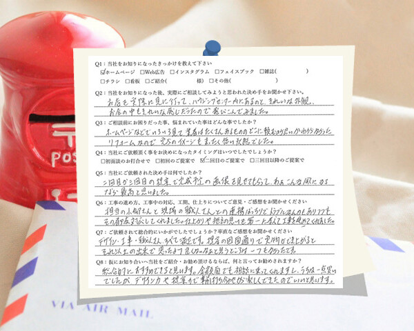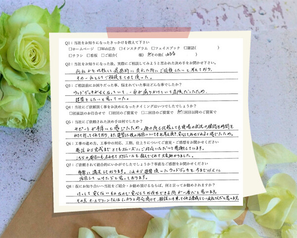 Q1:当社をお知りになったきっかけを教えてください ☑ ホームページ ☑ その他(以前に施工あり) ...