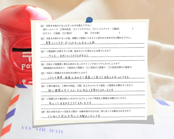 Q1:当社をお知りになったきっかけを教えてください ☑ ホームページ ☑ 看板 Q2:当社をお知りに...