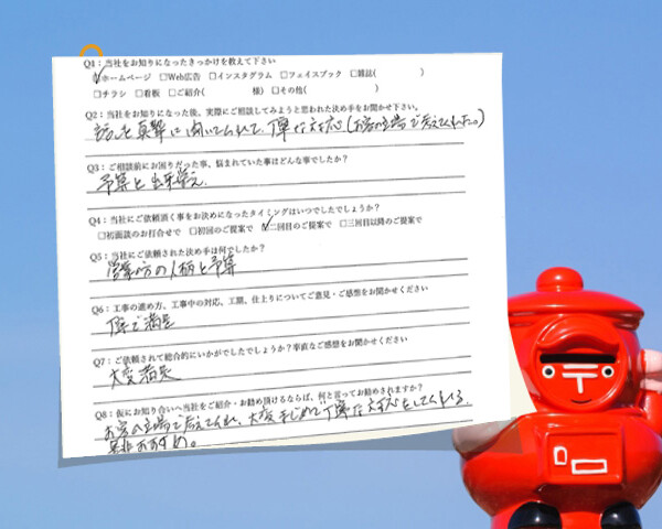 Q1:当社をお知りになったきっかけを教えてください ☑ホームページ Q2:当社をお知りになった後、実際にご相談しよ...