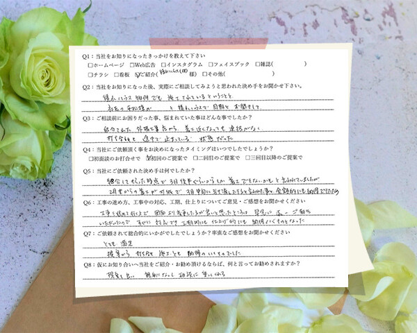 Q1:当社をお知りになったきっかけを教えてください ☑ 看板 ☑ ご紹介(へーベルハウス) Q2...