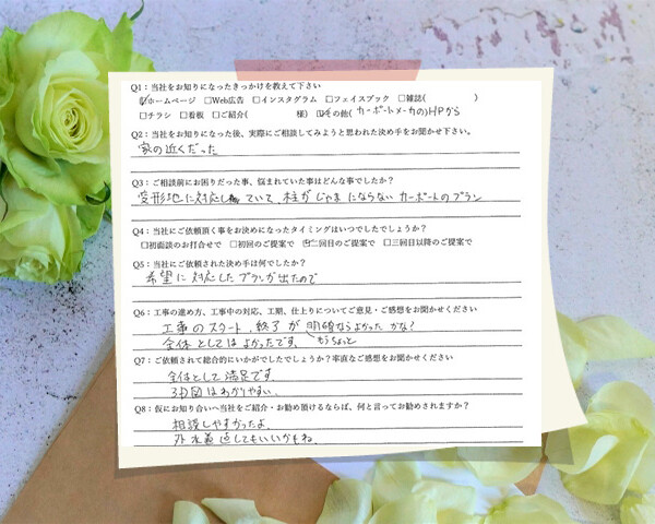 Q1:当社をお知りになったきっかけを教えてください ☑ ホームページ ☑ その他(カーポートメーカ...