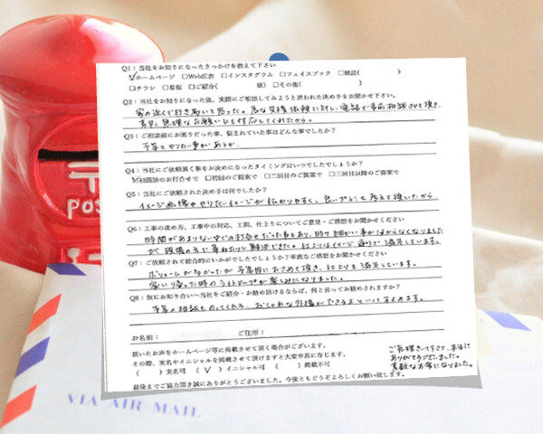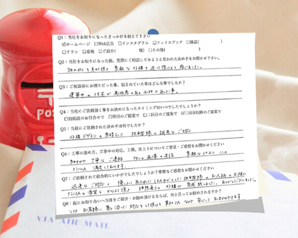 Q1:当社をお知りになったきっかけを教えてください ☑ホームページ Q2:当社をお知りになった後、実際にご相談しよ...