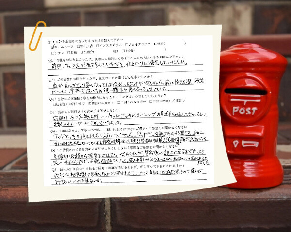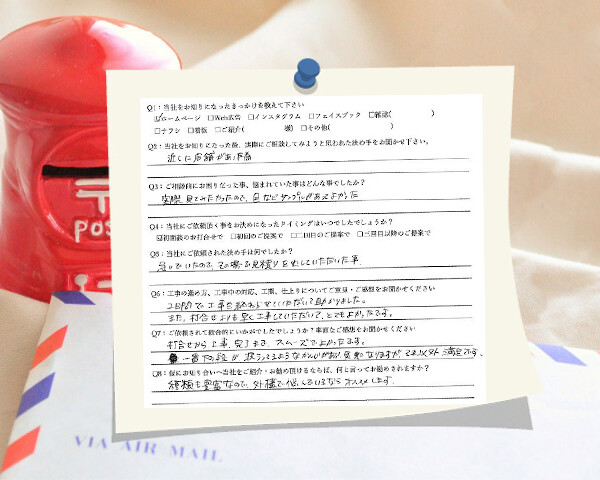 Q1:当社をお知りになったきっかけを教えてください ☑ ホームページ ☑ 看板 Q2:当社をお知りに...