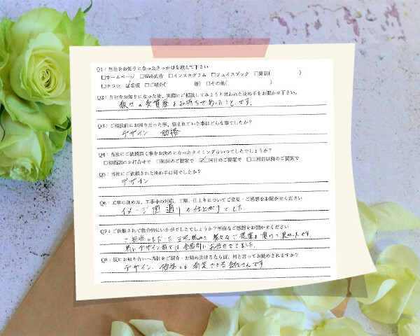Q1:当社をお知りになったきっかけを教えてください ☑ ホームページ ☑ インスタグラム Q2:当社...
