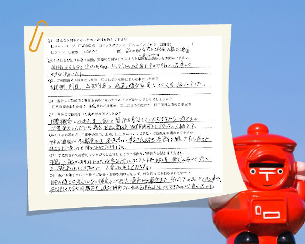 Q1:当社をお知りになったきっかけを教えてください ☑ ホームページ ☑ その他( 以前に工事依頼有...