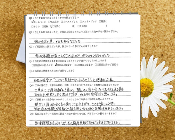 Q1:当社をお知りになったきっかけを教えてください ☑その他(タカショーさんからの紹介)(チラシ) Q2:当社をお...
