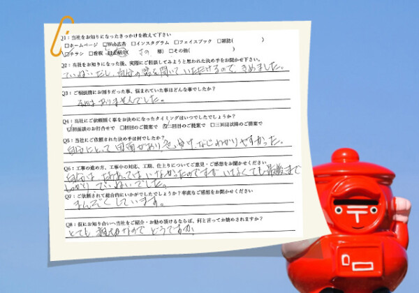 Q1:当社をお知りになったきっかけを教えてください ☑その他(娘の家の外構工事でお世話になった) Q2:当社をお知...