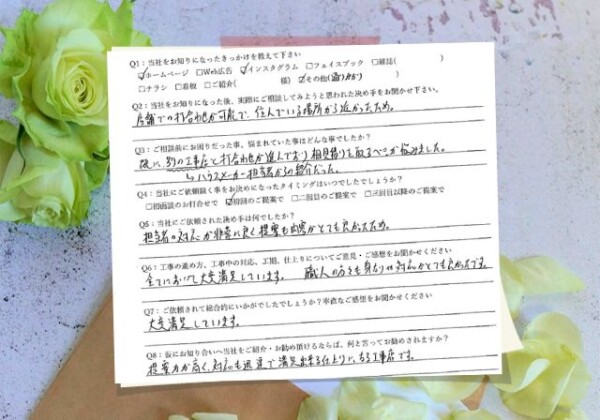 Q1:当社をお知りになったきっかけを教えてください ☑ホームページ Q2:当社をお知りになった後、実際にご相談しよ...
