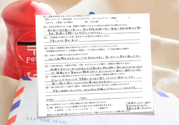 Q1:当社をお知りになったきっかけを教えてください ☑看板☑その他(近所) Q2:当社をお知りになっ...