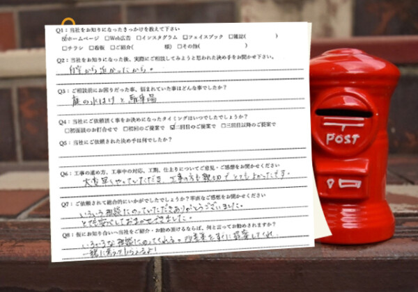 Q1:当社をお知りになったきっかけを教えてください ☑看板☑その他(近所) Q2:当社をお知りになっ...